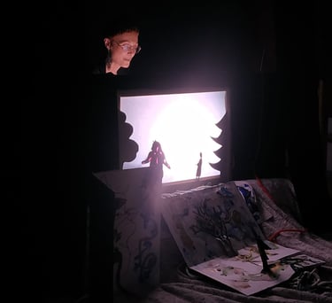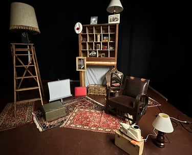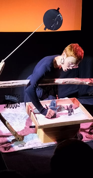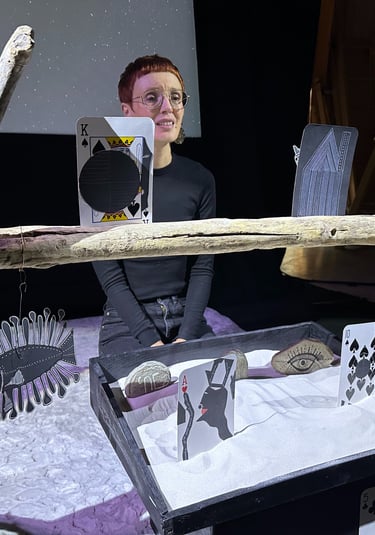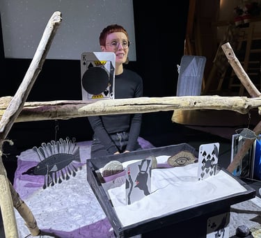 Après cinq spectacles créés depuis 2019 et quelques 20 tapis ou livres textiles créés, le cabinet de curiosités s’est invité tout naturellement à nous.